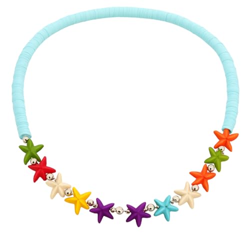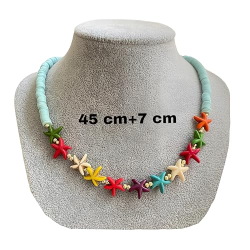 قلادة خرز على شكل نجم البحر، دلايات متعددة الالوان على شكل نجمة البحر، مجوهرات عصرية بنمط الشاطئ