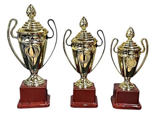 - كأس : يتميز هذا الكأس الرائع بتصميم ذهبي مزخرف مع تفاصيل معقدة وزخارف . لمسة نهائية معدنية: مصنوع عالي الجودة مع لمسة نهائية لامعة ومصقولة لعرض لافتة للنظر. قطعة مركزية رمزية: الشكل الشاهق الذي يشبه المزهرية وزخارف التاج يجعلها رمزًا مرموقًا للإنجاز. قاعدة متينة: مثبتة بشكل آمن على قاعدة صلبة، مما يضمن الثبات عند العرض. قطعة تذكارية: جائزة رائعة أو تذكار لإحياء ذكرى المناسبات الخاصة أو البطولات أو المعالم.