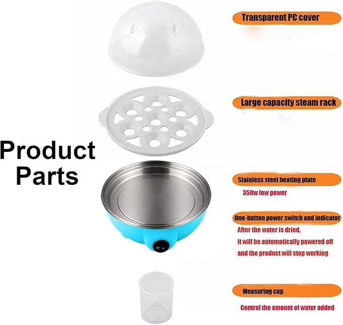 - سعة 7 بيضات: سعة كبيرة تصل إلى 7 بيضات للعائلات، مع توفير الوقت والماء، تأكد أيضًا من بقاء كل بيضة في مكانها وسهلة التقشير!