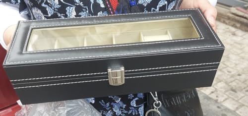 "صندوق ساعات جلدي مع 6 خانات للحفظ"