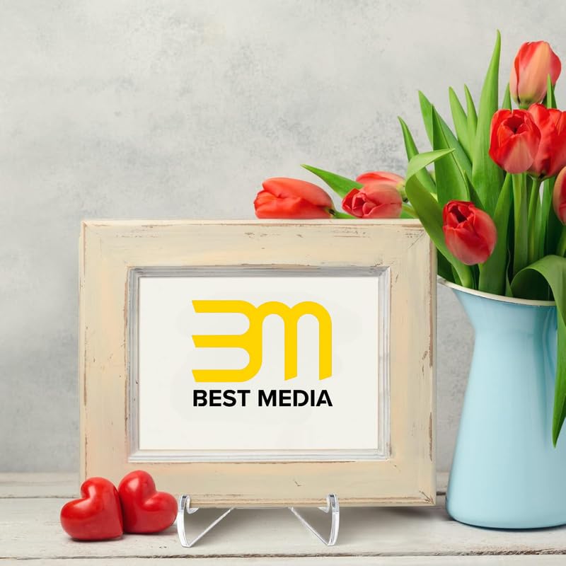 مجموعة حامل اكريليك شفاف، حوامل عرض صغيرة مع أرفف عميقة للوحات والكتب والأطباق والصور، حامل صور ثابت لسطح الطاولة لديكور المنزل والمكتب من بيست ميديا (عبوة من قطعتين)
