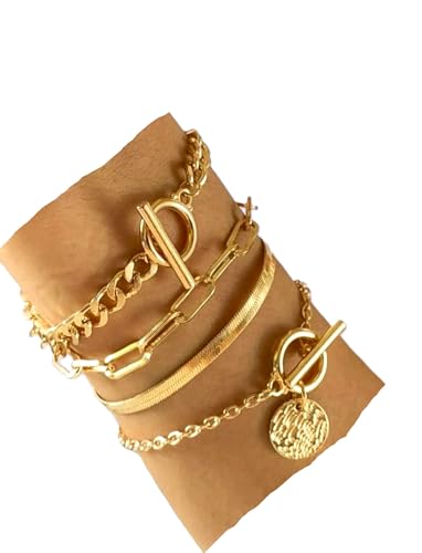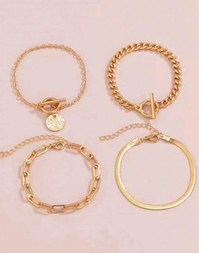 إسورة للنساء، مصنوعة من النحاس الأصفر، بلون ذهبي أصفر وتصميم سلسلة بسيطة، مقاس عريض