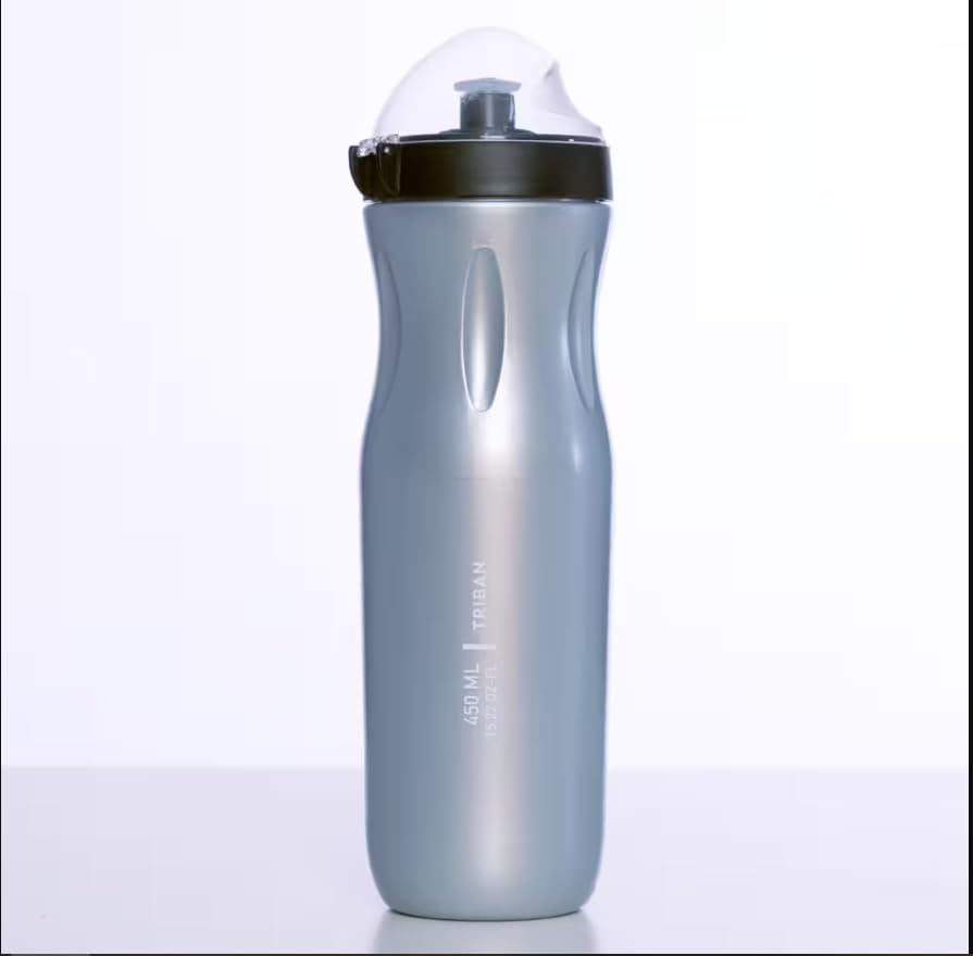 زجاجة مياه رياضية، سعة 450 مل، رمادي، غطاء علوي قلاب