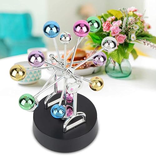 نموذج حركة دائمة كهربائي ببندولات ذات حركة فيزيائية وكرات ملونة تعمل بالبطاريات لتزيين سطح المكتب والتسلية (البطاريات غير متضمنة)