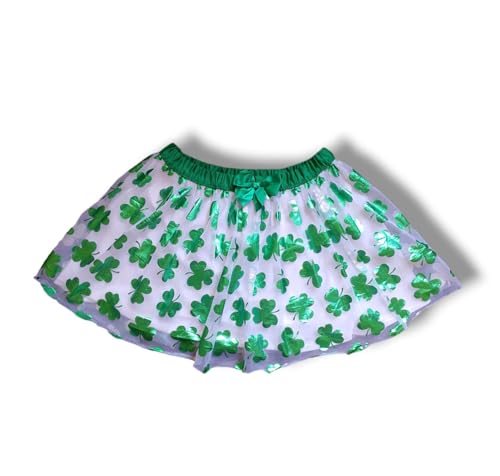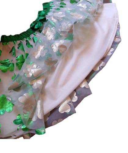 جيني تنورة من التول بتصميم اوراق شجر مشجرة، طبقتان، بطانة داخلية - زي تنكري للبنات بعمر 4-6 سنوات، اخضر وابيض، تنورة