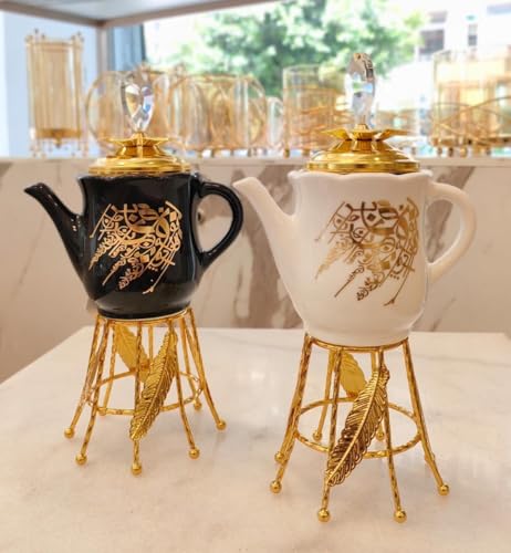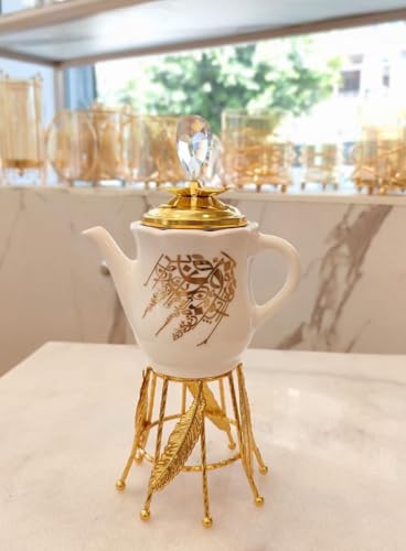 مبخرة عربية من البورسلين مع حامل معدني للمنزل وغرفة المعيشة والمكتب لرمضان وعيد الأم من فلامينجو، أبيض