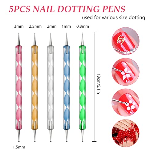 طقم ادوات طلاء الاظافر مكون من تستخدم للتنقيط ولزخرفة تحتوي الاداة على طرفين مصممة للرسم المانيكير متعدد الألوان