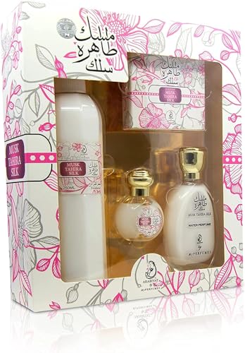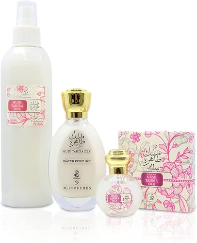 - جوهرة الأنوثة والرقي يحتفل عطر مسك طاهرة حرير بالأنوثة والأناقة الخالدة. يحتوي على أربعة أساسيات: معطر جو او دي بارفان وزيت عطري وبخور المسك الطاهرة. تجمع هذه التركيبة الرائعة بين روائح الزهور الرقيقة والمسك المخملي واللمسات الشرقية الراقية. دع نفسك تغلف بهذا العطر الجذاب، الذي يترك أثرًا لا يُنسى أينما ذهبت.