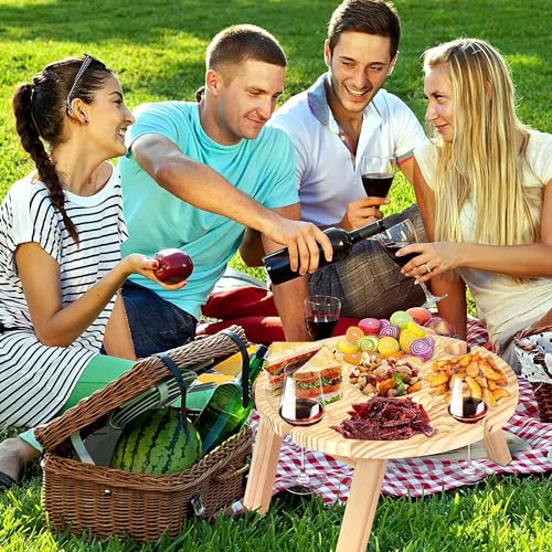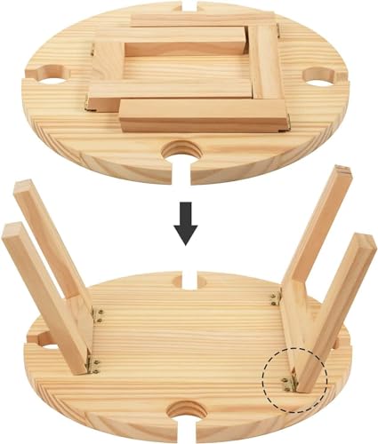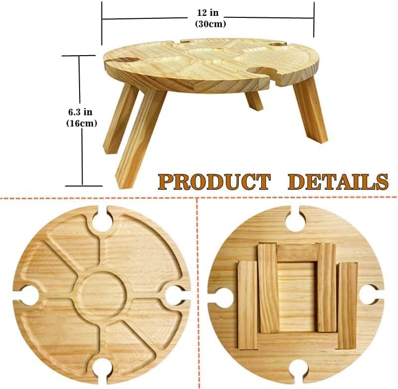 طاولة خارجية محمولة تخييم صغيرة نزهة خشبية مستديرة نبيذ شاطئ قابلة للطي للحديقة والسفر والتخييم والنزهات والشاطئ 30 × 16 سم