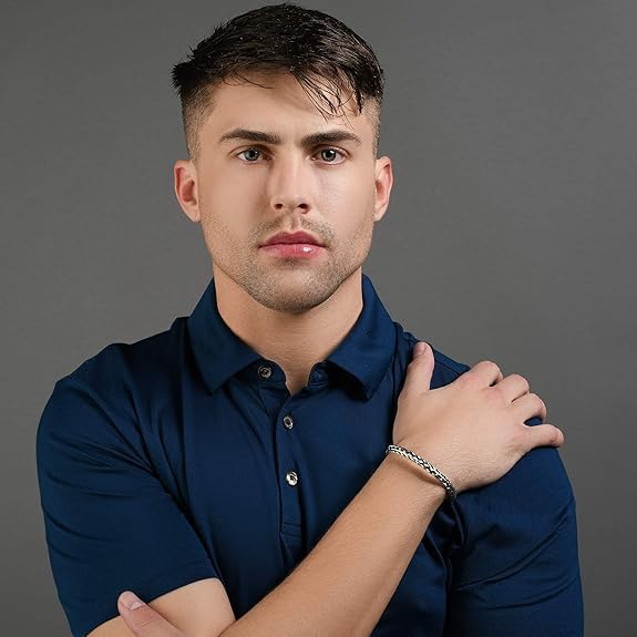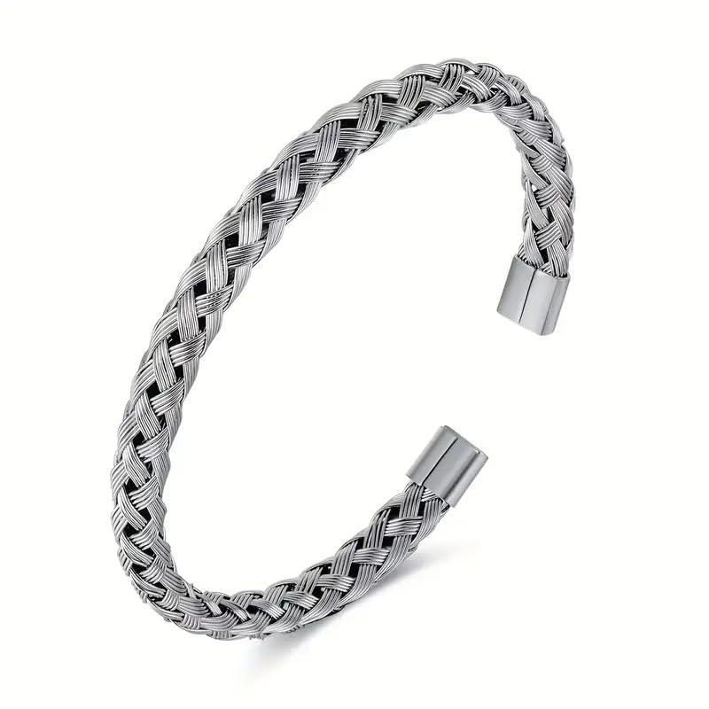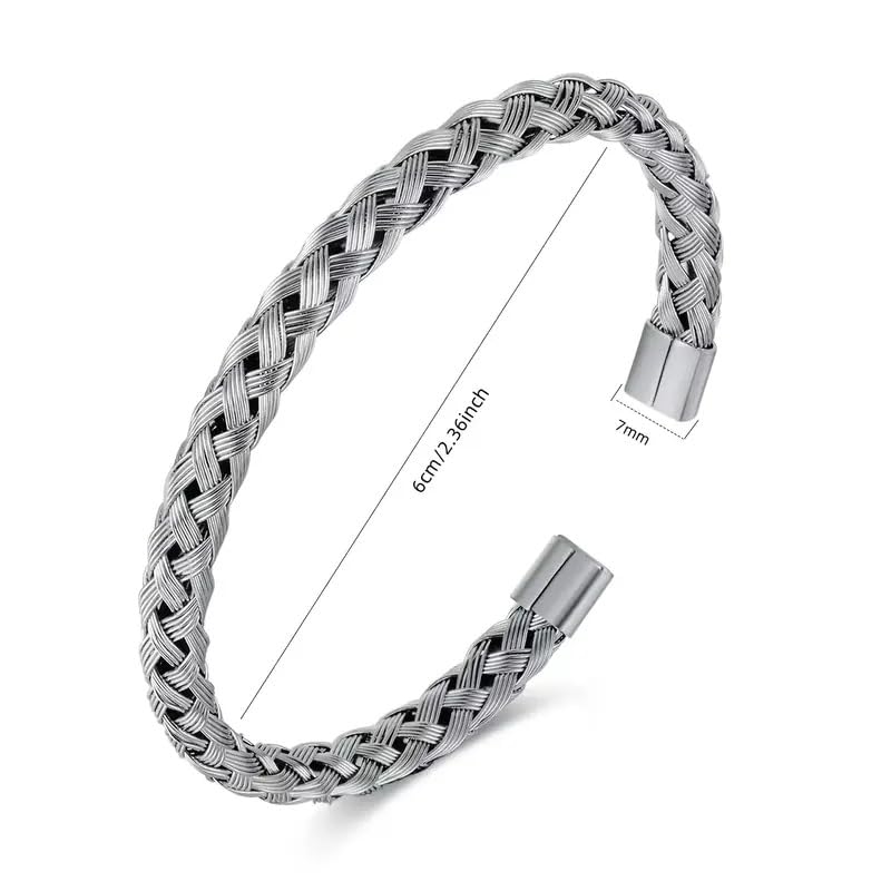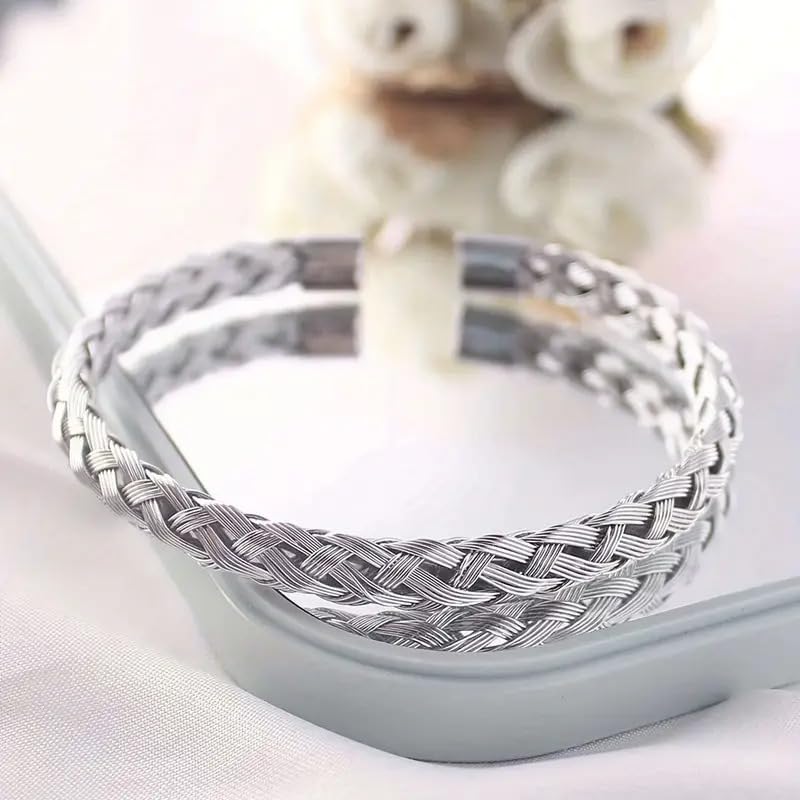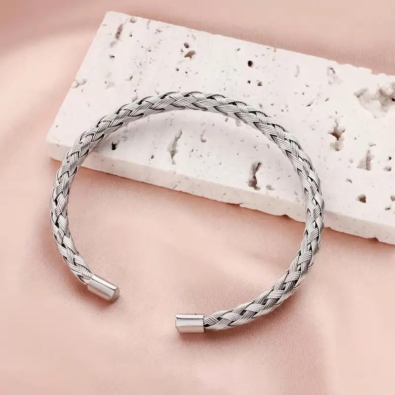 إسورة من فيروز للمجوهرات للجنسين، مصنوعة من الستانلس ستيل، بلون فضي وتصميم مجدول، مقاس 16.5 سم