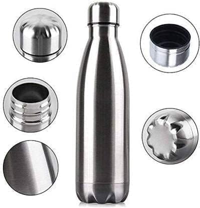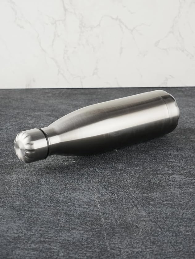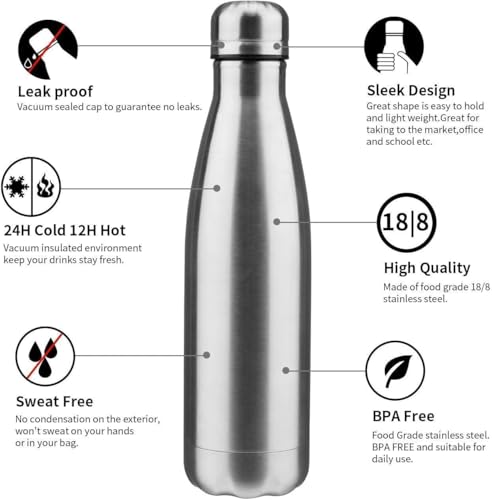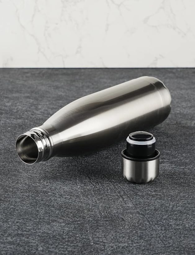 زجاجة مياه رياضية من الفولاذ المقاوم للصدأ بجدار مزدوج معزول بتفريغ الهواء، زجاجة سفر حرارية تحافظ على المشروبات ساخنة وباردة، (فضي)