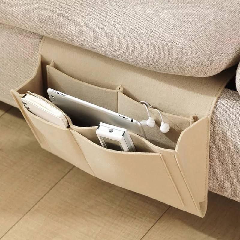 جيني منظم تخزين من اللباد بجانب السرير، حامل متعدد الجيوب لجهاز التحكم عن بعد، علبة الكترونيات للكنبة والسرير