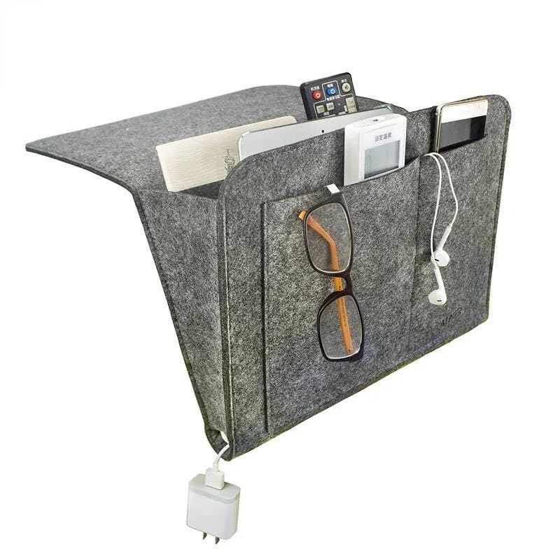 - تصميم متعدد الاستخدامات: منظم بجانب السرير متعدد الجيوب مصنوع من مادة اللباد الرمادي المتينة، مثالي للحفاظ على الإلكترونيات والإكسسوارات منظمة بجانب سريرك أو أريكتك
