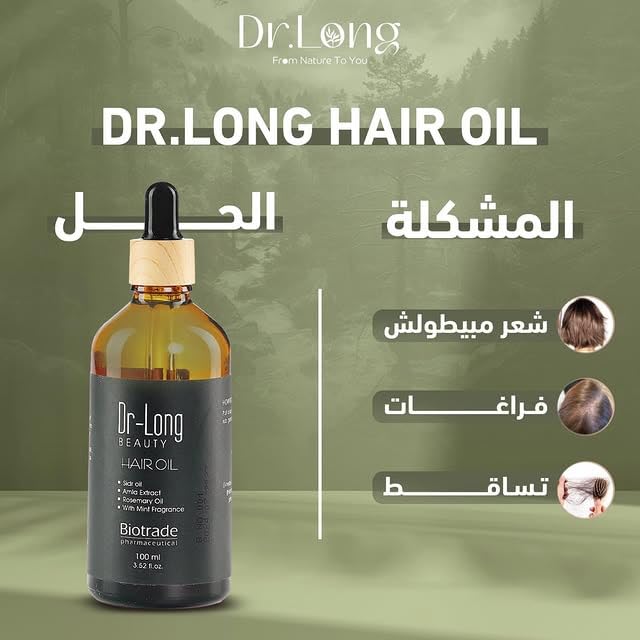 - زيت دكتور لونج (Dr. Long Hair Oil) – تركيبة غنية بالزيوت الطبيعية مثل زيت إكليل الجبل، زيت الأرغان، وزيت الخروع، التي تساعد في تقليل التساقط وترطيب فروة الرأس بعمق12.