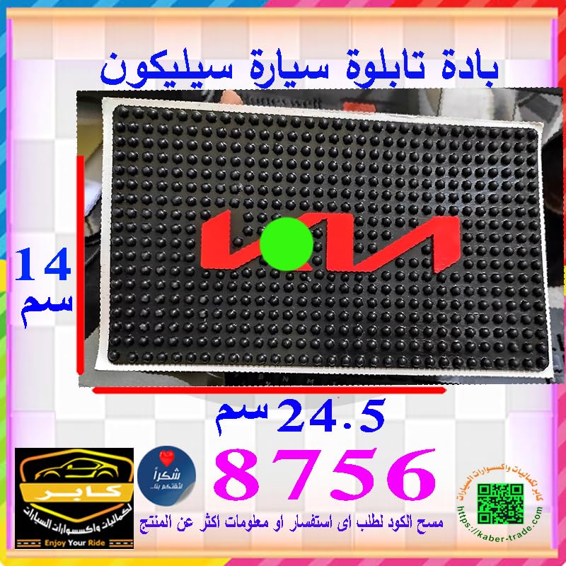 قاعدة لاصقة لتابلوه السيارة مضادة للانزلاق لحمل الهاتف والاكسسوارات الداخلية ( بادة سيليكون محببة ، كى ؟ ، مقاس 24.5*14 سم ، كود : 8756) - من كابر تريد