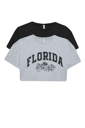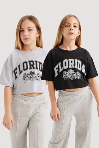 بلوزة قصيرة بأكمام ورقبة دائرية للبنات من ديفاكتو قطعتين