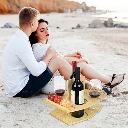 - محمولة وخفيفة الوزن: بفضل تصميمها القابل للطي وهيكلها خفيف الوزن، فإن طاولة النزهة هذه سهلة الحمل والإعداد والتخزين، مما يجعلها مثالية لمحبي النبيذ أثناء التنقل وعشاق الهواء الطلق.