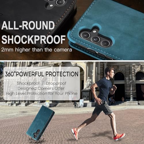 جراب موبايل فاخر مغناطيسي قابل للطي من الجلد الصناعي بفتحات للبطاقات بمسند عملي متوافق مع سامسونج جالاكسي A55 لون أزرق