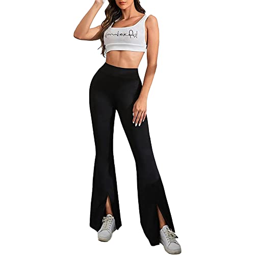 بنطلون رياضي نسائي ذو ساق واسعة بخصر عالي - مقسمة, اخضر داكن, ، من نيلتون