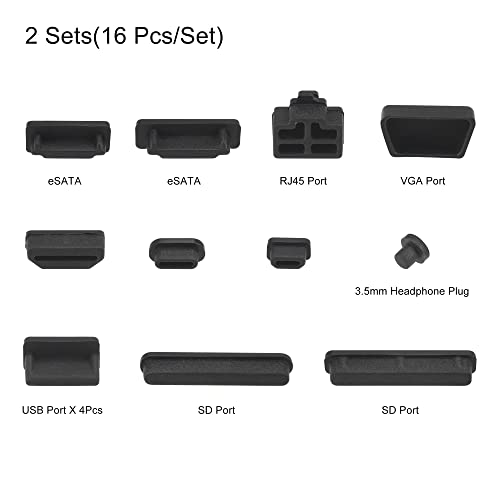 - مجموعة أغطية منافذ السيليكون بمقاس: أسود، إجمالي 32 قطعة (مجموعتان، 16 قطعة لكل مجموعة)، مناسبة لمنفذ الكمبيوتر