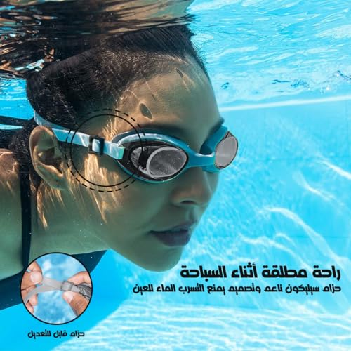 نظارات سباحة للبالغين مضادة للتسرب والضباب، حماية من الأشعة فوق البنفسجية، سيليكون وحزام قابل للتعديل، عدسات بصرية عالية الجودة، مثالية للسباحة دون انقطاع