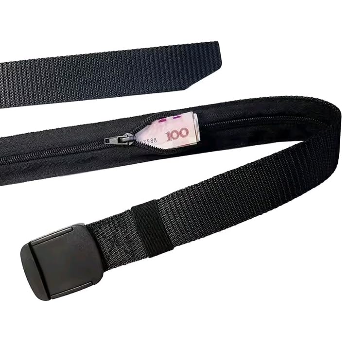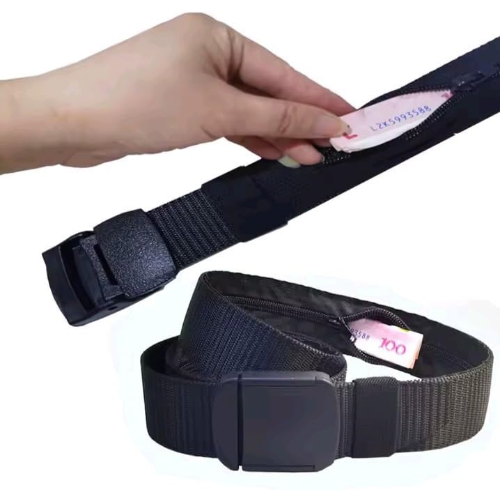 حزام رجالي قايش - ذكي بجيب سري مخفي بسحاب – حزام غير معدني قابل للتعديل لحمل النقود – مثالي للسفر، العمل، الحياة اليومية والرحلات من