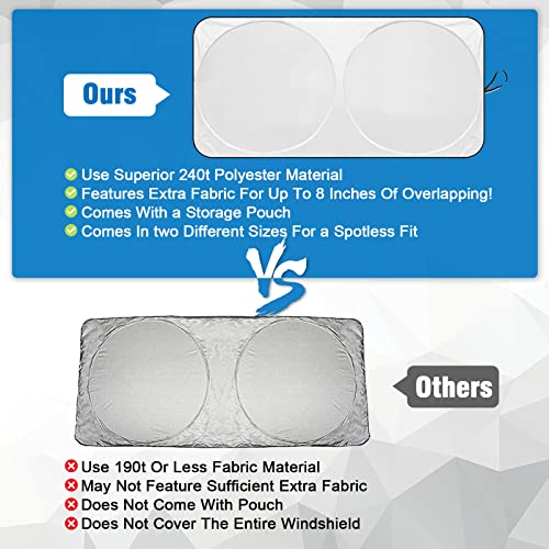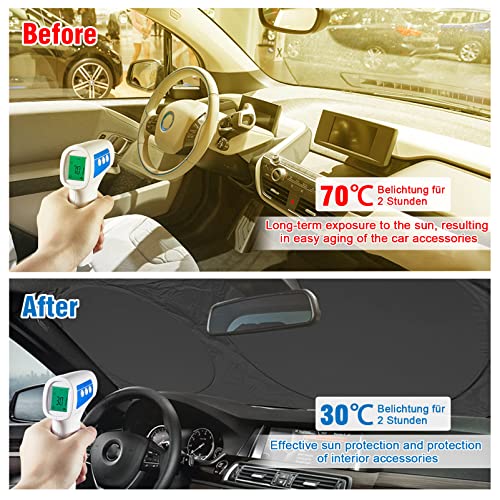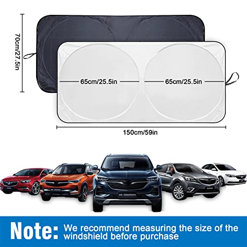 - الأبعاد العالمية: يبلغ مقاس واقي الشمس للزجاج الأمامي 150 سم × 70 سم. شماسة مناسبة لمعظم السيارات العادية. نوصي بأخذ المقاس قبل الشراء. هدية مثالية للعائلة أو الأصدقاء.