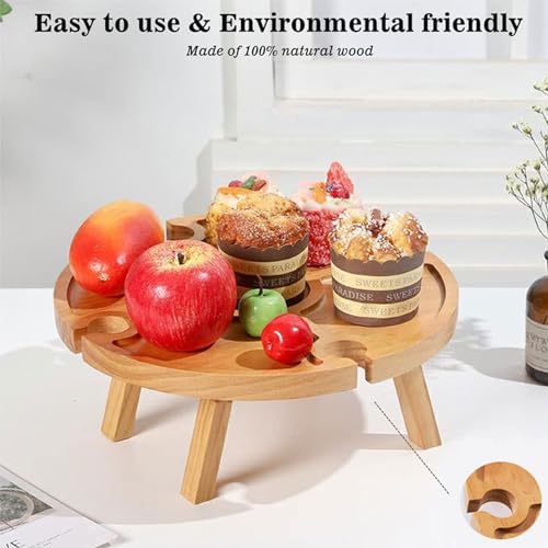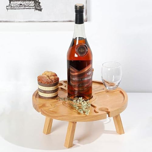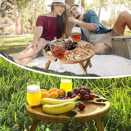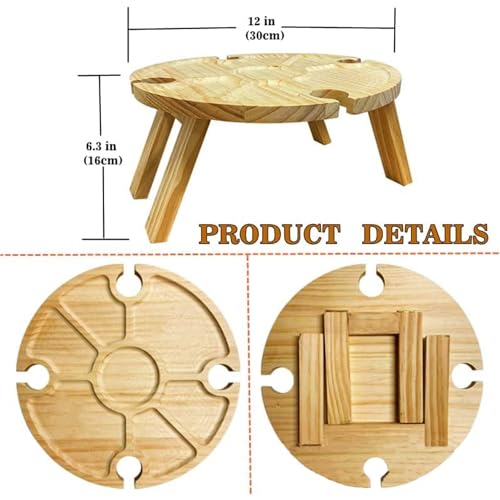 طاولة نبيذ خارجية من اوكونجك نزهة خشبية صغيرة قابلة للطي محمولة للحديقة والتخييم والنزهات والشواء والشاطئ لون خشبي
