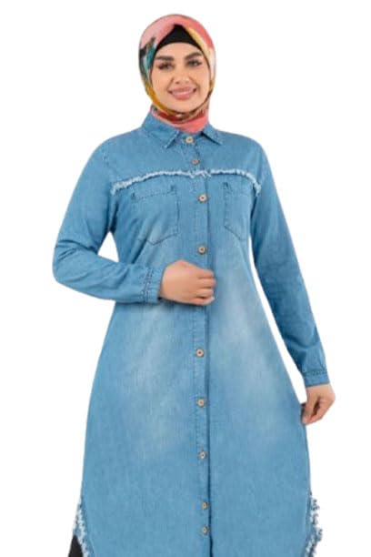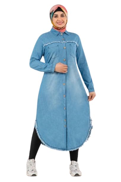 تونيك من خامة الجينز بدون غطاء للراس للنساء من جمال صنز، مقاس XXXL 90K، Tlgi 7041GS33472Tulji-XXXL