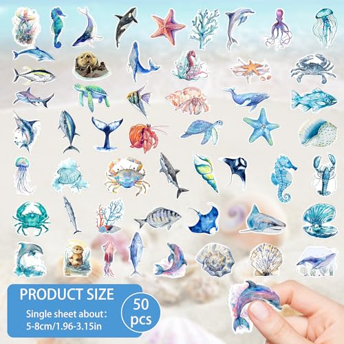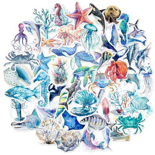 ستيكرات حيوانات المحيط بتصميم أسماك لاصقة مقاومة للماء من عالم الحياة البحرية، مناسبة للأطفال في حفلات عيد الميلاد وسجل القصاصات ولوح التزلج والموبايل واللاب توب من اماكسيو، 50 قطعة