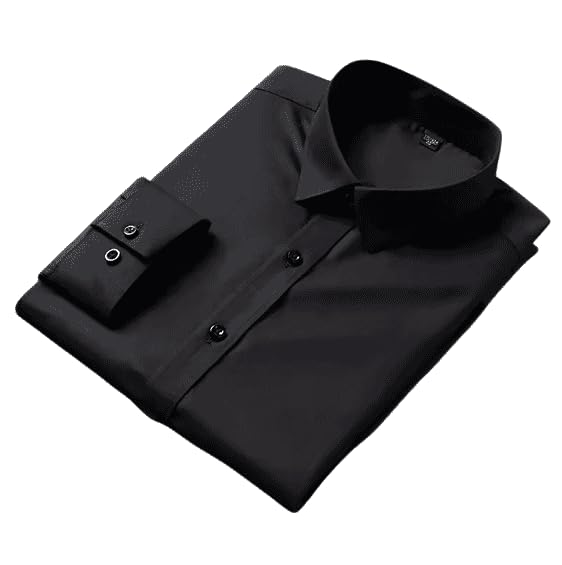 قميص بقصة ضيقة واكمام طويلة - قميص رسمي للرجال بنمط احترافي لون اسود مقاس L -42..a135