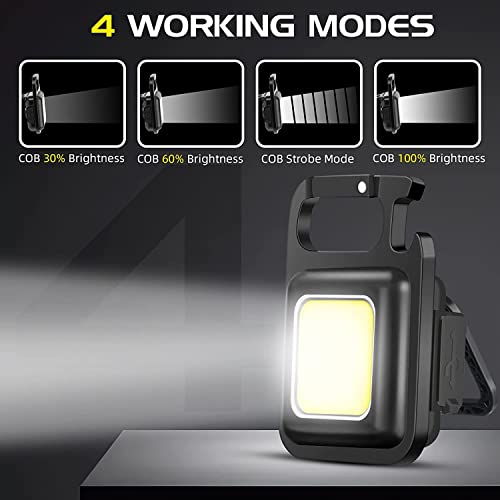 كشاف إضاءة سي او بي صغير محمول بسطوع 800 لومن لميدالية المفاتيح، كشاف قابل لاعادة الشحن ومقاوم للماء بـ4 أوضاع إضاءة مع قوس قابل للطي ومغناطيس قوي من ايكس (ألوان متنوعة)