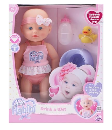 عروسة واقعية بخاصية الشرب والتبول 36 سم بميزات واقعية مع ببرونة ونونية وجسم ناعم مع زي عصري قابل للإزالة للعب الأدوار للأعمار من 3 سنوات فما فوق من بيبي حبيبي