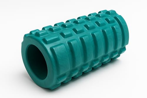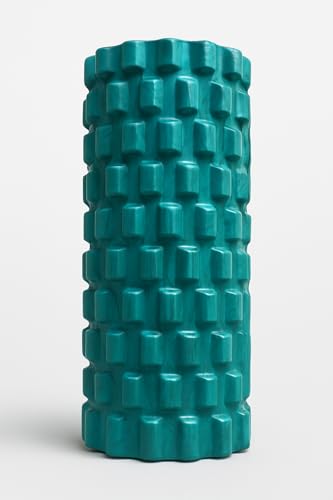 بكرة فوم منسوجة لتدليك الأنسجة العميقة واستعادة العضلات عالية الكثافة للظهر والساقين وتمارين اللياقة البدنية لليوجا والبيلاتس والعلاج الطبيعي بلون أزرق مخضر، مقاس 45 سم