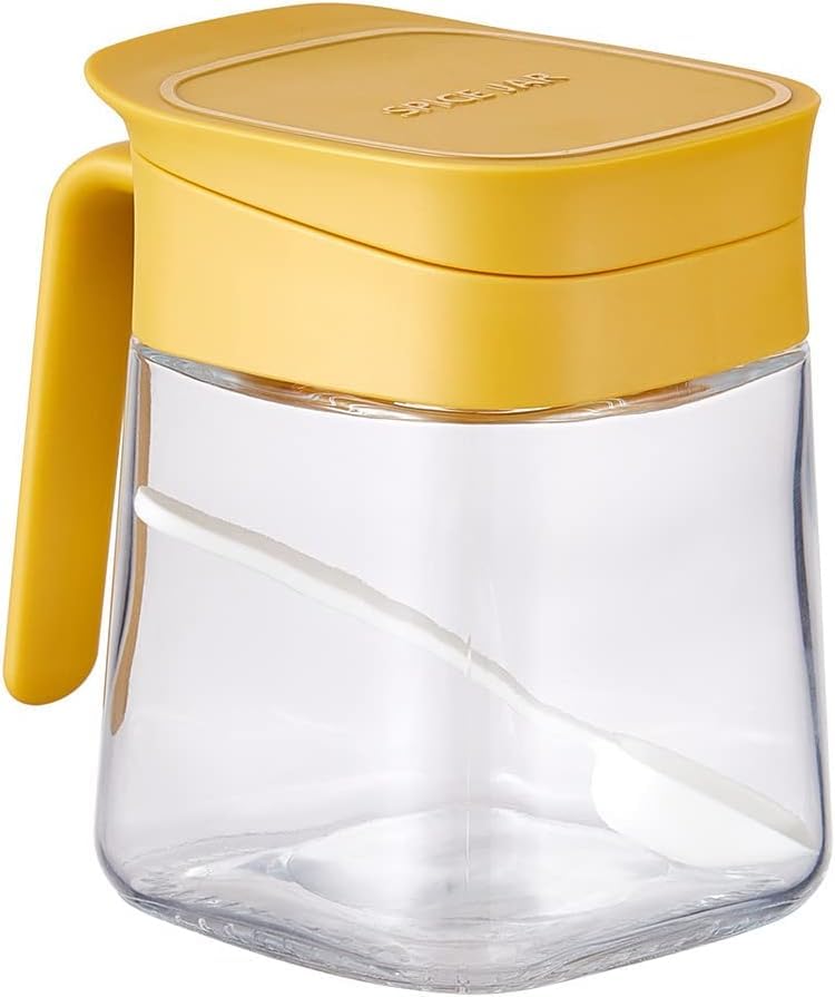 برطمانات تخزين زجاجية للمطبخ مع غطاء محكم الغلق وملعقة بسعة كبيرة لتخزين التوابل وللمطبخ المنزلي (سعة 300 مل) (لون أصفر)