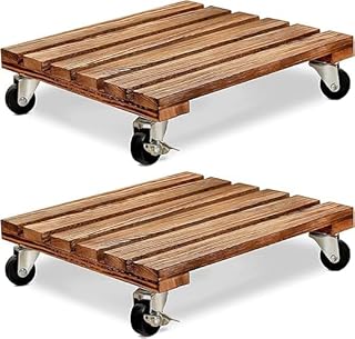 Meridian Wooden Plant Stand with Wheels 12"-30cm, Square Plant Roller with Lockable Metal Wheels, Heavy Duty Rotating Plant Stand for Outdoor and Indoor Use, Large Plant Pot for Patio