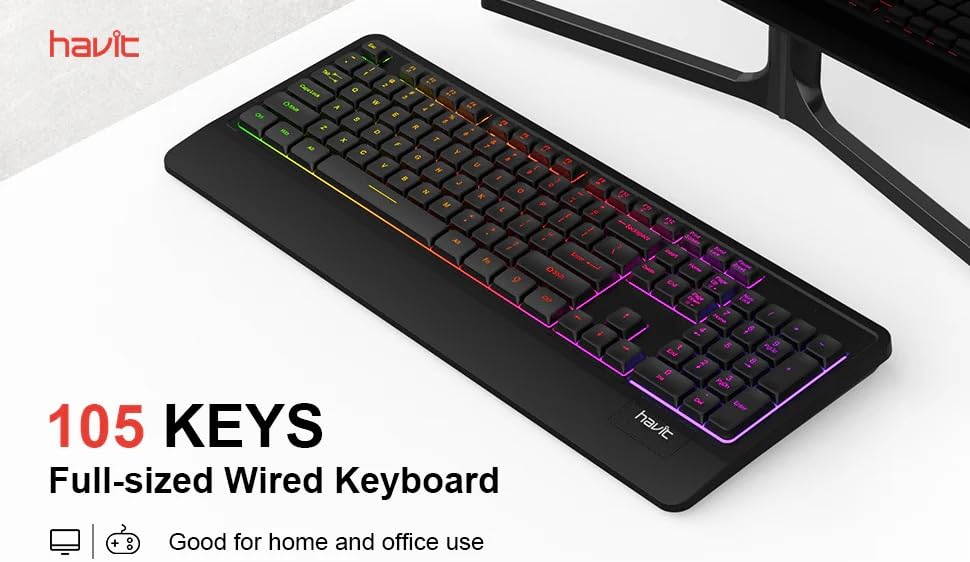 لوحة مفاتيح ميكانيكية KB488L – بإضاءة خلفية RGB، واجهة USB، مفاتيح عالية التحمل، طول الكابل 1500 مم -لون أسود