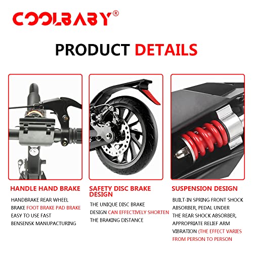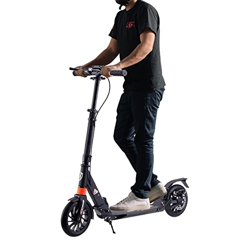 سكوتر دفع بعجلات كبيرة 200 ملم للبالغين، مع فرامل قرصية، نظام امتصاص مزدوج للصدمات (أسود) من كول بيبي، هيكل يحتوي على الألومنيوم