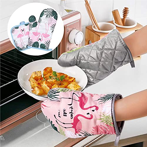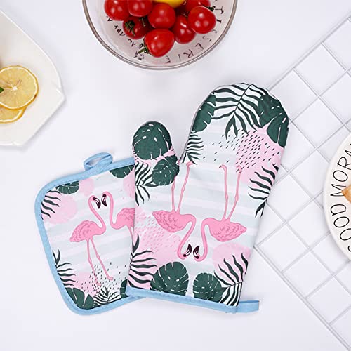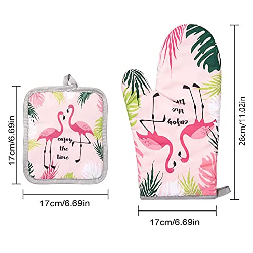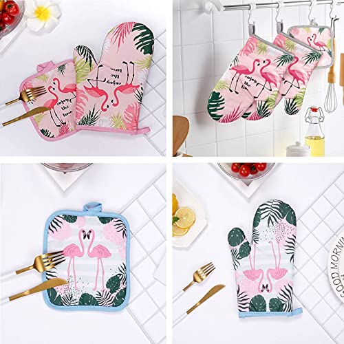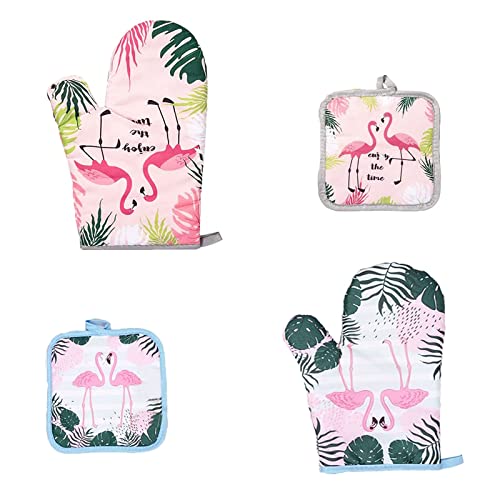 طقم جوانتي فرن ومساكة أواني من قطن مقاوم للحرارة للطبخ والخبز والشواء من تيسوميوي، 4 قطع (فلامنجو)