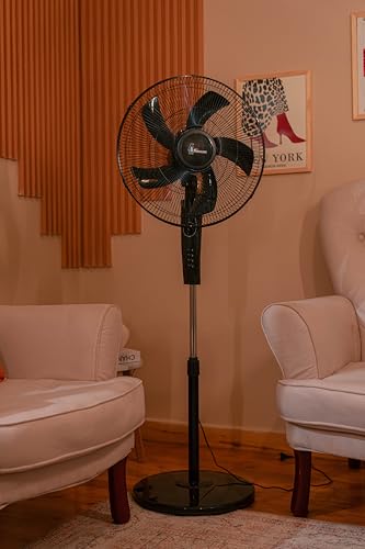 مروحة ستاند دوارة للتبريد بـ 5 ريش 65W، من بينجوين، أسود (45.7 سم)