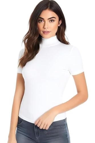 تيشرت بيسيك برقبة عالية واكمام قصيرة للنساء من انكوتون