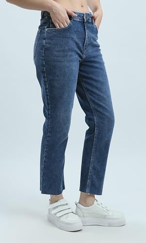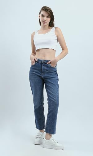 بنطلون جينز ممزق بقصة موم فيت للنساء من ريفين، أزرق