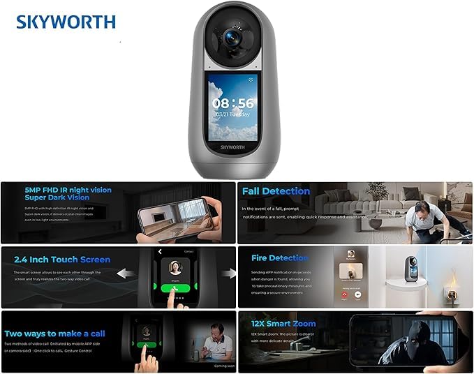 كاميرا منزلية ذكية A50، شاشة لمس 2.4 بوصة، كشف البشر/ التتبع، فيديو ثنائي الاتجاه، واي فاي 2.4 جيجاهرتز و5 جيجاهرتز