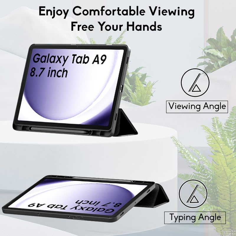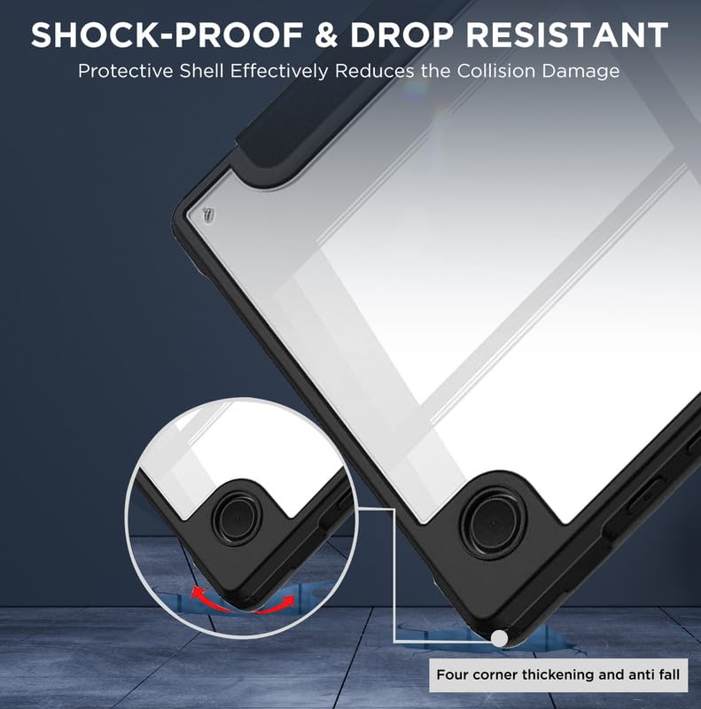 جراب حماية لجهاز سامسونج جالاكسي تاب A9 مقاس 8.7 بوصة هجين تابلت من روبيستريون A9 [SM - X110 X115 X117] بظهر شفاف - اسود جلد صناعي