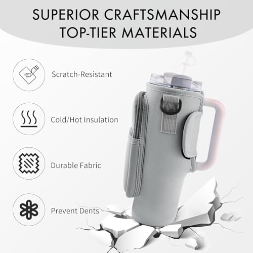 - 【مثالية لكوب ستانلي بسعة 40 اونصة】حقيبة حمل زجاجات المياه هذه مناسبة لكوب ستانلي بسعة 40 اونصة. الملاءمة الآمنة والحماية للكوب الخاص بك، مما يحافظ على سلامته من الخدوش ويوفر عزلًا للاحتفاظ بدرجة الحرارة.