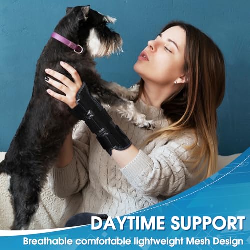 - ✅【مريحة ومزودة بمسامات تهوية】- يمكن للتصميم الشبكي لسطح جبيرة المعصم والإبهام امتصاص العرق بسرعة والحفاظ على معصمك منتعشًا وجافًا لمدة 24 ساعة؛ البطانة مصنوعة من مادة الفلانيل، التي تمتاز بالنعومة ولطيفة على البشرة، وبدون رائحة كريهة، لتوفر لك الشعور بالراحة طوال النهار والليل لنتائج علاج مثالية