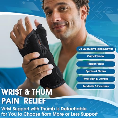 - ✅【يدعم كلاً من الإبهام والمعصم】- دعامة المعصم مزدوجة الوظائف هذه لا تستخدم كمثبت للإبهام فحسب، بل أيضًا تدعم المعصم وتثبته في مكانه للمساعدة في تخفيف وعلاج الألم الناجم عن التواءات مفصل الرسغ والإبهام والإجهاد والتهاب الأوتار والتهاب زليل الوتر دي كيرفان، والتهاب مفاصل الرسغ، والتهاب المفاصل الروماتويدي، ومتلازمة النفق الرسغي.
