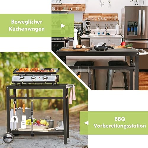 - متعدد الوظائف: عربة الشواء عملية ومثالية للاستخدام الداخلي والخارجي. يمكن استخدامها كترابيزة جانبية أو ترابيزة شواء أو عربة تقديم أو كسطح عمل. مناسبة لمعظم حفلات الفناء الخلفي والمناسبات والتجمعات والمطابخ والبوفيهات وتناول الطعام في الهواء الطلق وأكثر من ذلك.