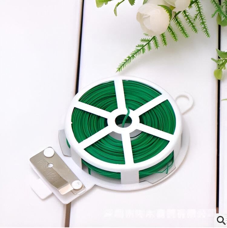 سلك لربط النباتات - سلك معدني متين على بكرة مريحة مناسب لأعمال البستنة وإغلاق أكياس الطعام والمزيد، يتضمن قطاعة مدمجة، مثالي للمنزل والمطبخ والمكتب، 30 متر، أخضر (خيار 1)