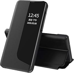 جراب حماية من جلد صناعي بتصميم قابل للطي مع نافذة عرض ومسند لموبايل أوبو A55 المعز ليس أصلي أسود